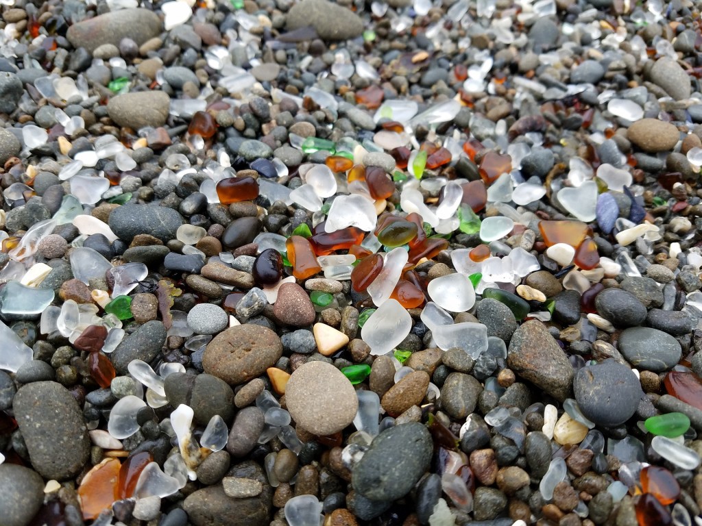 So, at Temple’s urging, I wrote a paragraph about my stepfather collecting scrap metal in the old town dump while I was in high school and about how I believe he played a significant role in transforming the dump into the tourist attraction it later became. Today, the old town dump, now known as Glass Beach, features an abundance of sea glass—broken glass worn smooth by the ocean—and it attracts visitors from far and wide.