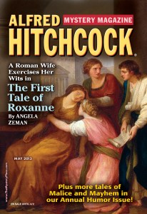 Angela’s first published short story, “The Witch and the Fishmonger’s Wife,” appeared in AHMM in 1993; she would publish five stories with us featuring Mrs. Risk, and then an acclaimed novel, “The Witch and the Borscht Pearl,” in 2001. More recently, she inaugurated a series of historical mysteries in 2013 with “The First Tale of Roxanne,” set in ancient Rome. That story is distinguished by the sensitive characterization of a woman under duress – you almost don’t notice the deft plotting that moves it right along. After reading it, I knew I wanted more of Roxanne. “The Second Tale of Roxanne” appeared just a few months ago in our September / October 2019 issue, and we are now in the process of recording it for our podcast.